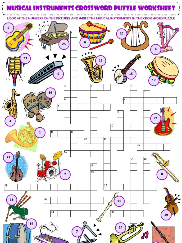 Musical Instruments Vocabulary Criss Cross Crossword Puzzle Worksheet