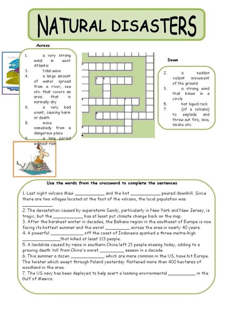 This crossword puzzles about natural disasters is ideal for teen ESL