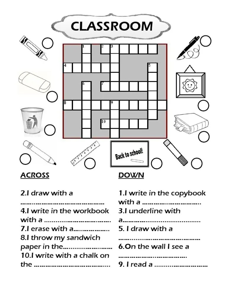 School Items CROSSWORD (B&W and Key Included) School items, Crossword